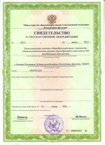 | Адрес местонахождения образовательной организации* | 368205, Республика Дагестан, Буйнакский район, с.Н-Казанище, ул.Бийболатова (местность "Бетаул") |